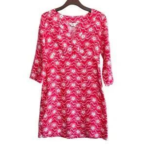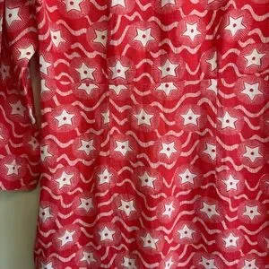Boden Linen Dress Size 6 Long red Stars Print 100% Linen Washable 4th of July
