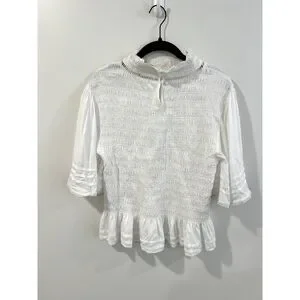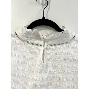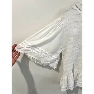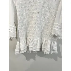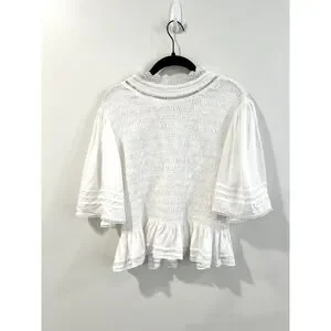 Soft Surroundings Smocked Flutter Sleeve Blouse Ruffle Lace