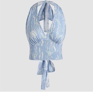 Cider Ocean World blue halter top with a unique pattern. Perfect for casual outings or a day at the beach. size small
