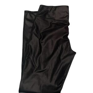 Shiny black pleather leggings in a sleek design. Perfect for a stylish look. (Tag removed)