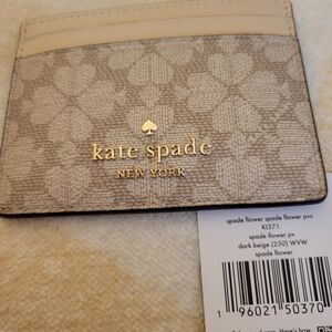 Elegant beige card holder by Kate Spade. Features a stylish floral pattern.