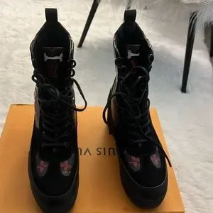 ❌SOLD❌ Authentic LV Limited Edition Catogram Canvas Grace Coddington Platform Laureate. Black leather, rust and white design with black suede in front. Excellent Condition. Worn maybe 3-4 times. Complete description in photos