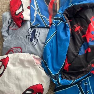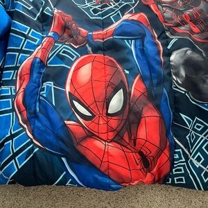 Vibrant Spider-Man themed bedding set featuring red, blue, and white colors. Perfect for superhero fans. Was put on bed never slept in smoke free pet free home fast shipping