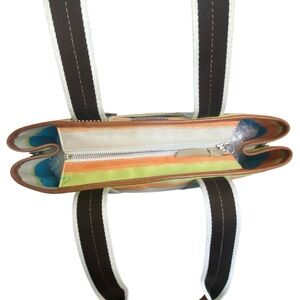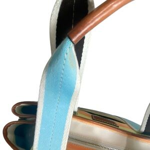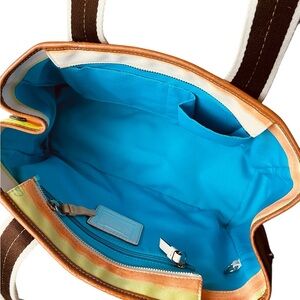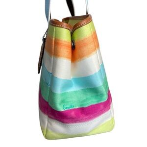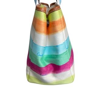 Coach Like New Hampton Leatherware Water Color Pastel Striped Canvas Tote