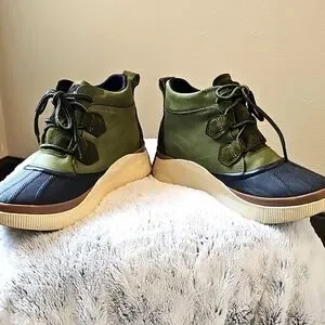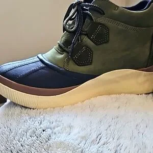 UPPER: Waterproof materials. Full grain leather and suede upper, felt and suede upper or suede with houndstooth textile. Heel pull tab. Lace closure. Textile lining. Waterproof bootie construction. Waterproof vulcanized rubber shell. Laces are not waterproof.