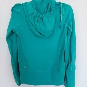 We designed this fitted, hooded jacket as an all-in-one cover up to keep us warm as we make our way to-and-from our Kundalini yoga class. The long length covers our bum and is great when paired with running or yoga tights.