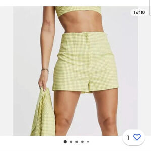 New without tags, women's TopShop yellow green plaid summer shorts with high waist. No flaws. Sz 6.