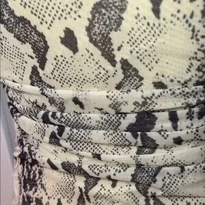 Step out in style with this elegant snake print dress. Perfect for any occasion, this dress features a chic design in classic black and cream tones. A must-have addition to your wardrobe.