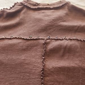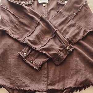 NWT Davi & Dani Stylish brown button down shirt. Features frayed edges and metal stud details. Perfect for casual wear.