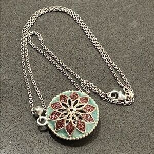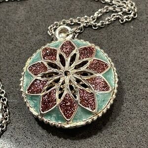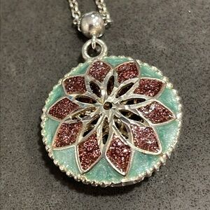 Previously owned Blue and Purple Glitter Enamel Flower Puff Pendant Necklace