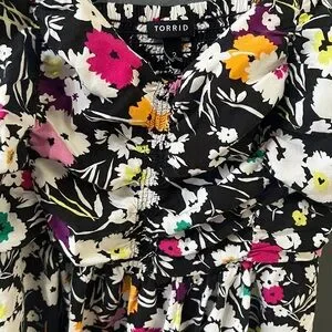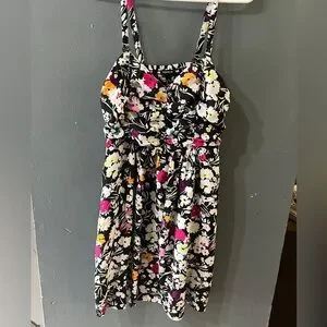 Stylish floral print dress with pockets . Features vibrant colors for a chic look.
