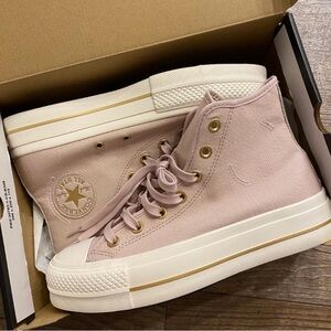 Converse Mauve Canvas High-Top Chuck Taylor Sneakers with Gold Accents
