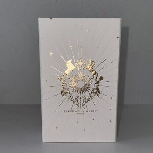 Elegant white box with gold detailing from Parfums de Marly