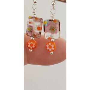 They are handmade with purple and orange millefiori Murano glass and feature silver findings. The colors are so vibrant and the design is unique and eye-catching. I've received so many compliments on them and love wearing them with a variety of outfits. I highly recommend checking out similar handmade jewelry pieces for anyone looking to add some color and style to their accessory collection.
