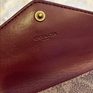 This compact wallet is crafted in a mix of Signature canvas and smooth leather. Secured by a snap closure, the trifold design is perfectly organized to hold cards, cash and receipts.