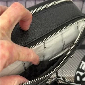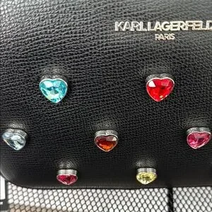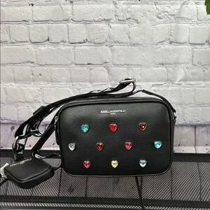 Stylish and versatile, this Karl Lagerfeld black crossbody bag features vibrant colorful accents. Perfect for adding a touch of elegance to any outfit.