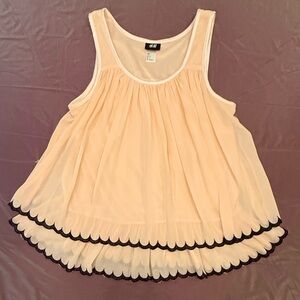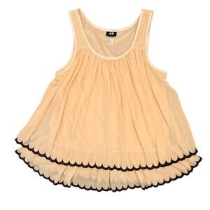 H&M Y2K Vintage Peach/Black Sleeveless Tiered Scallop Trim Blouse Size 2/XS