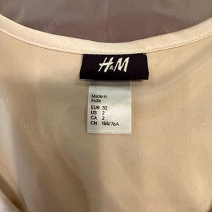 Chic H&M sleeveless blouse in a soft peach color with black trim. Perfect for casual outings.