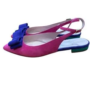 🎀 Kate Spade Brielle Slingbacks 🎀 Absolutely adorable pink suede slingbacks with purple bows and green heel. Excellent condition, only flaw is where the store’s sticker was placed on the shoe bed pulled part of the logo off when cleaning. Size 7, comes with box.