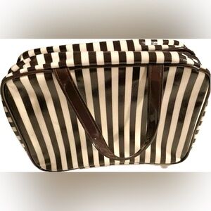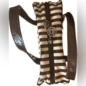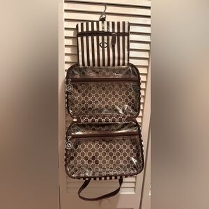 Vintage signature Henri Bendel Brown & White Striped Hanging Toiletry Bag