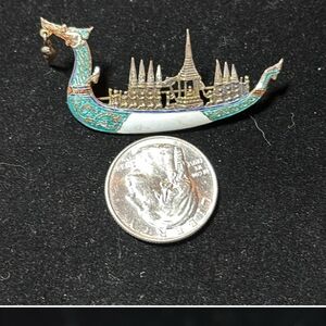 Vintage 1950's Sterling Silver Siam Dragon Boat Brooch