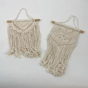 Additional Details: Set of two cream macramé wall hangings with intricate designs. Perfect for adding a bohemian touch to any room.