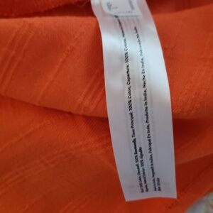 Stylish orange button-down midi dress perfect for any occasion. Features a flattering V-neck design, smocked waist in back for comfort & style & a slit in front. A perfect light fabric for summer too!