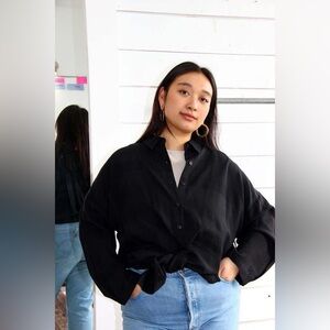 Nwt MYSTERY-Black BUTTON UP CAMO POCKET &Cuff Patch Military Adams’s Top