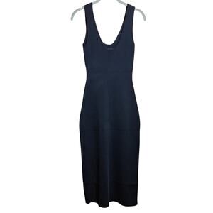 new with tags stretchy size small its up to medium from because of alice BOA british minimalist high quality designer heavy stretch ribbed knit midi tank scoop neck sexy black dress viscose spandex nylon blend