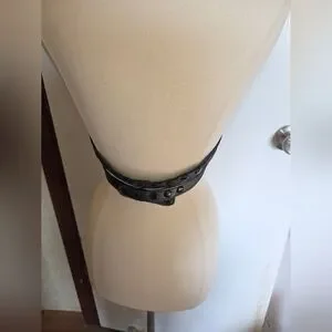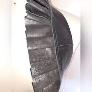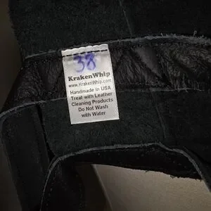 leather black harness with silver accents on the Ruffles. Perfect for adding a chic touch to any outfit.