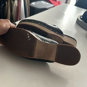 J. Crew black leather clogs with gold grommets size 6