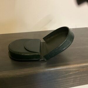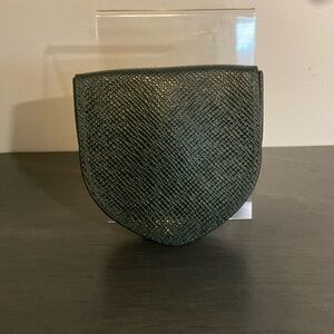 This is a dark green Taiga coin case. It’s in good used condition but does show minor signs of wear. It’s not separated but does have some loosening from use. There’s no peeling! Please review photos to determine condition independently.