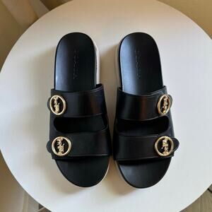 Coach Gable Sandal Black Leather with Gold Buckles Size 8.5B