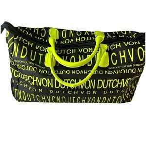 NWT Von Dutch Monogram Black Yellow Overnight Travel Gym Sports Bag