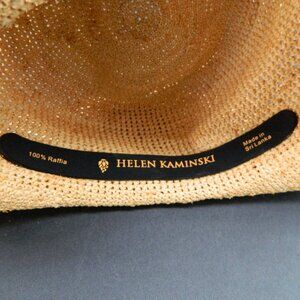 Beautiful 100% Raffia Hat from designer Helen Kaminski, made in Sri Lanka. In excellent condition with no rips, tears, pulled threads, stains or odors. No size is indicated but I would say it runs large.