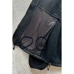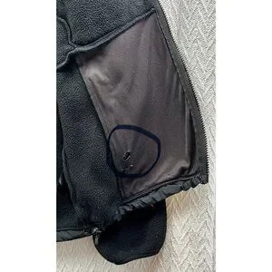 Light wear (holes) on back side of pockets and small tear on back of jacket (see pics). Otherwise, this jacket is in good condition. All zippers are in great condition.