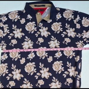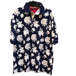 Tommy Hilfiger Tropical Hawaii looking short sleeve polo. Navy blue and off white print.
