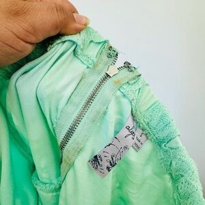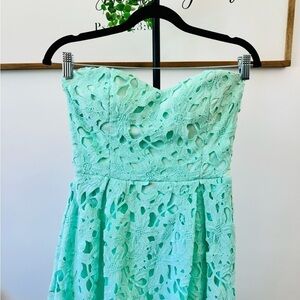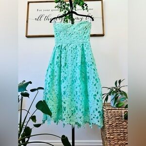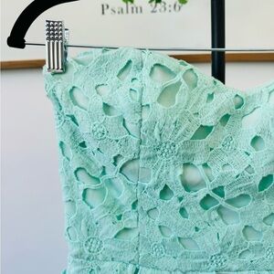 Alya Francesca’s Harpeth Mint Teal Seafoam Midi Guipure Floral Embroidered Dress