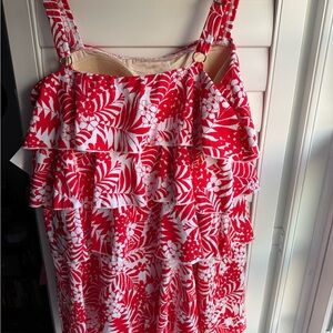 Stylish red and white floral swimsuit with ruffle details. Perfect for summer outings to the beach or the pool. Made with high quality materials that lasts and has breast padding. NWT