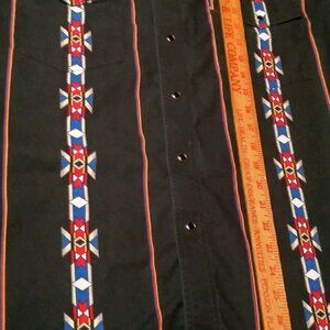 Wrangler Weastern Shirt Men Medium Black SHort Sleeve Southwest Geometric Stripe
