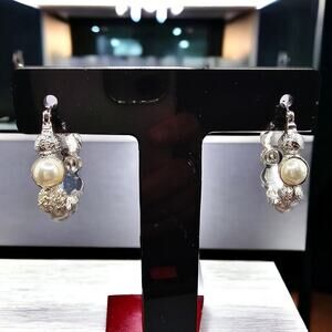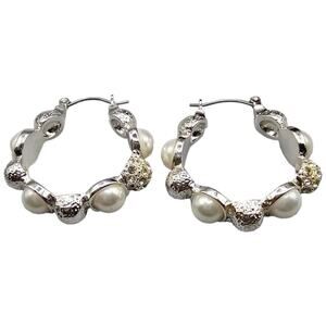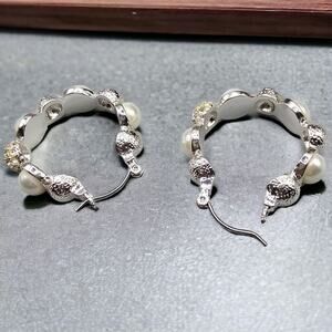 Pierced White Earrings Simulated Half Pearls Rhinestones Hoop Women