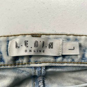 Flying Girl Ledin Online Women Size Large Acid Washed Stretch Denim Jeans Raw Hem Cropped