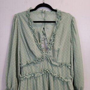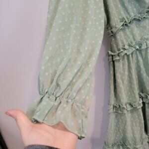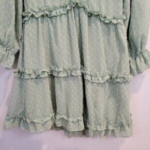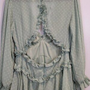 Shein Polka Dot Print Shirred Waist Layered Ruffle Hem Key hole Back Dress