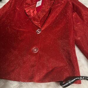 SLA THE LABEL Red Paloma Sparkle Blazer