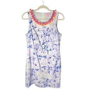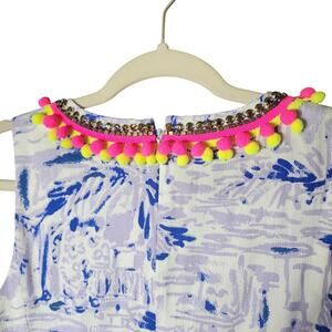 Lilly Pulitzer Sz 8 Mila Pom Neck Lilac Verben Cotton Lined Shift Dress Summer