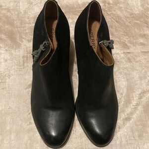 Excellent Condition. Black Leather/Suede. Side Zippers. 3 inch heel. Size 8.5