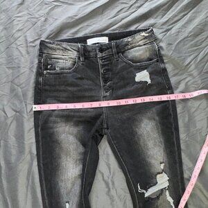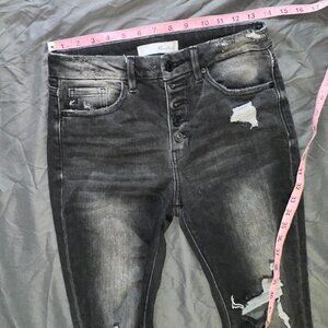 Kancan 4 button high rise distressed black jeans size 7 / 27 skinny