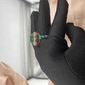 Enamel Ring with Green Stone in Oriental Style
