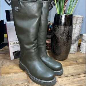 These knee-high boots from RENE CAOVILLA are practical with a decadent twist. Made from grained white calfskin, they have signature strass crystal embellishments at the pull tabs and soles.