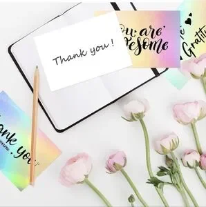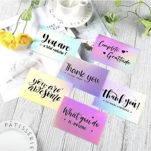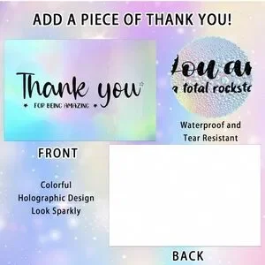 Multiple applications: these holographic thank you cards can be applied to decorate gift boxes, envelopes, packaging, etc., which will nicely set off every gift; The holographic thank you cards are suitable for birthday, wedding, confirmation, communion or other celebration